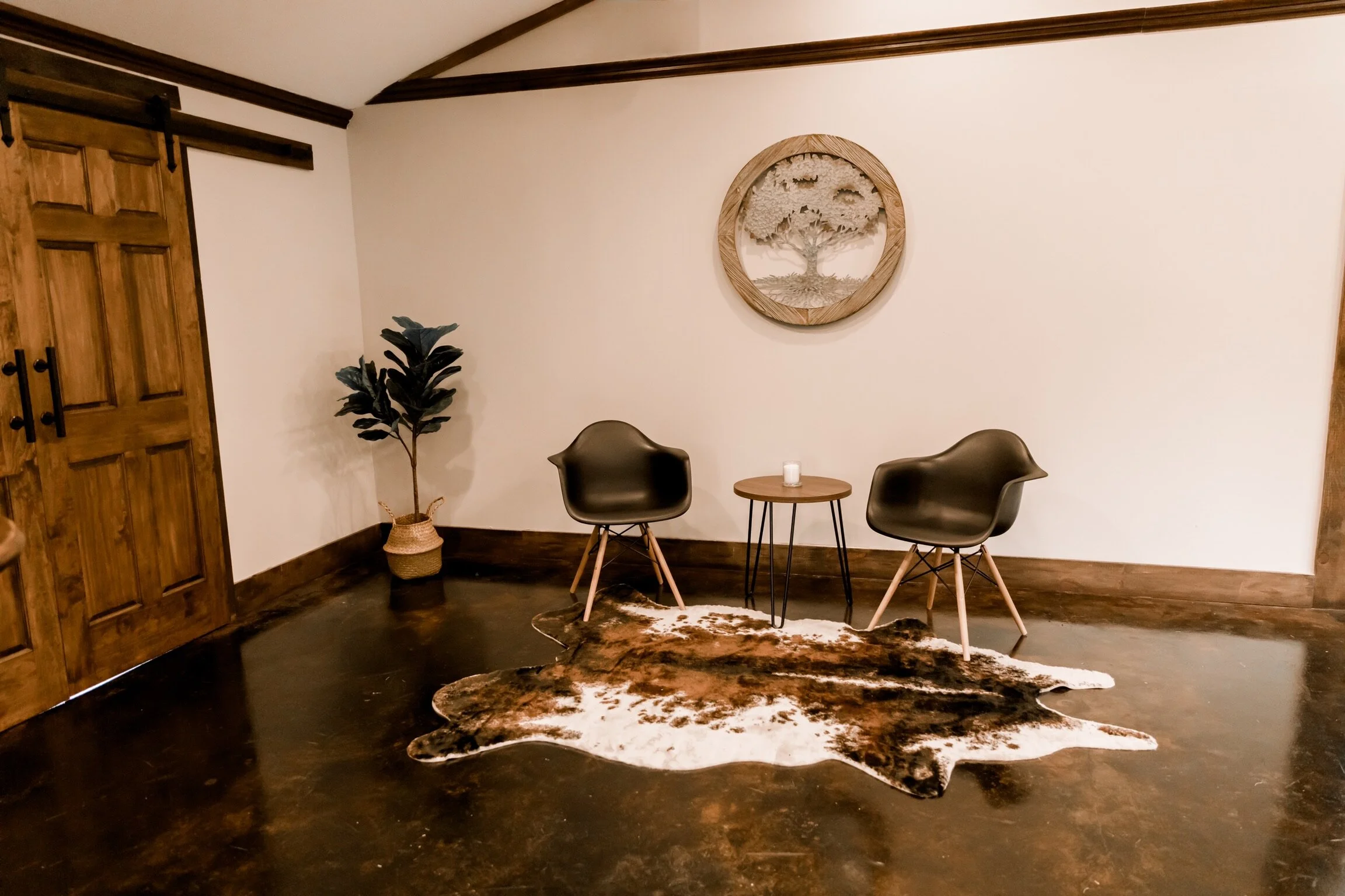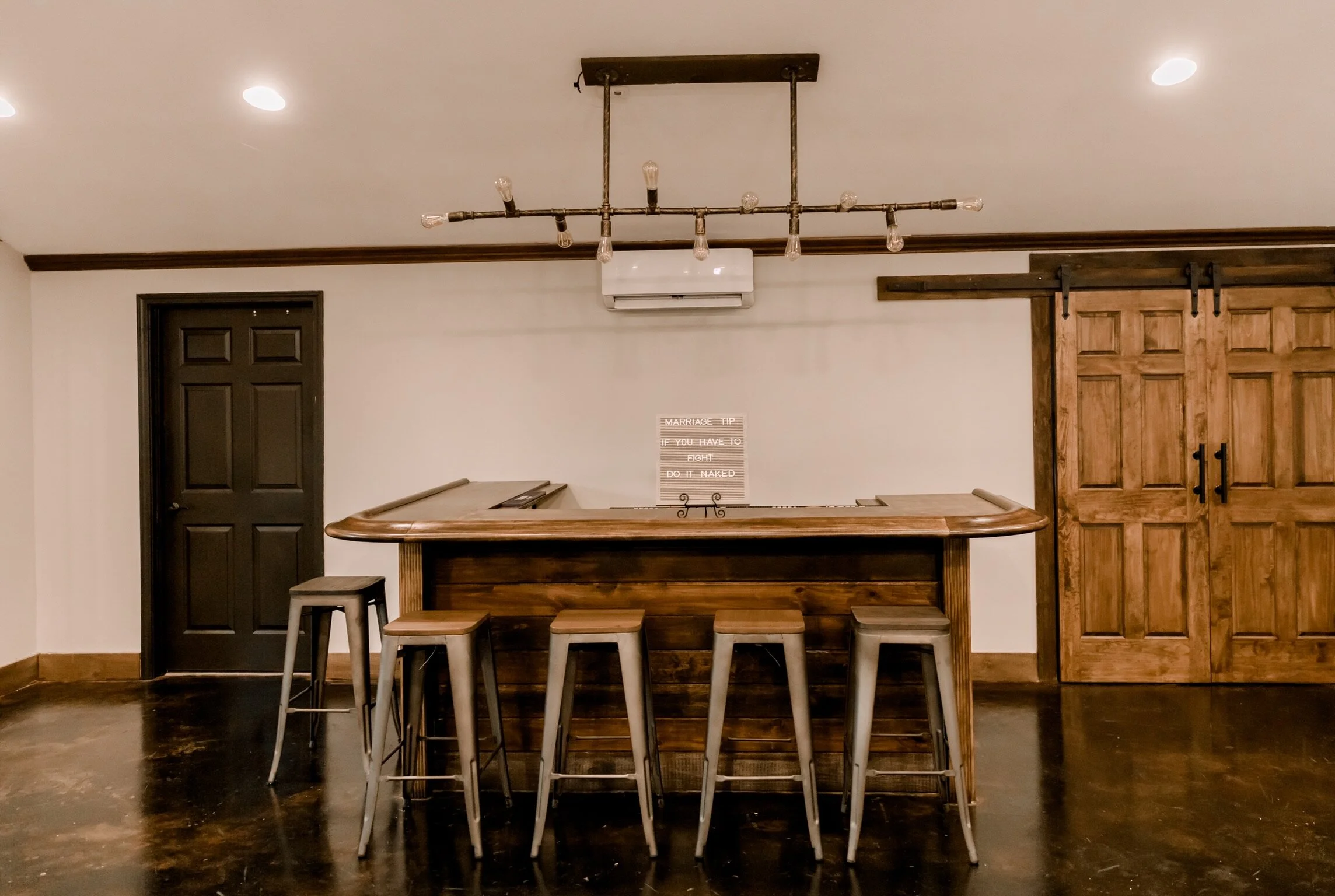 Take a seat and enjoy a drink. Our Grooms Suite is the perfect place to write your vows or enjoy your time with your guys. This is a brand new building with it’s own bar, changing area with custom sliding barn door and restroom. Please enjoy your day as you are served custom cocktails!
